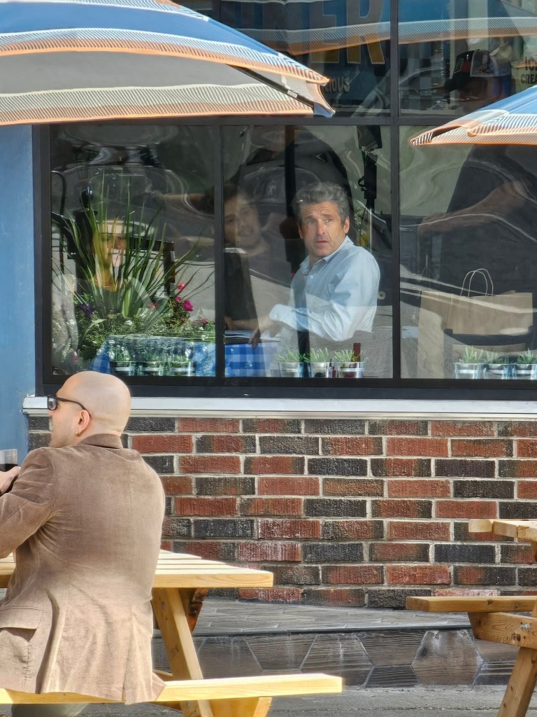 On Monday (25/08), Patrick Dempsey was on set filming both interior and exterior scenes near a cafe. In the new photos, the actor is seen wearing a light blue shirt, dark blue jeans, a dark grey jacket and light brown shoes. This new look is more casual and comes in sharp contrast with the one we have seen so far: black suit with a black shirt and black shoes.