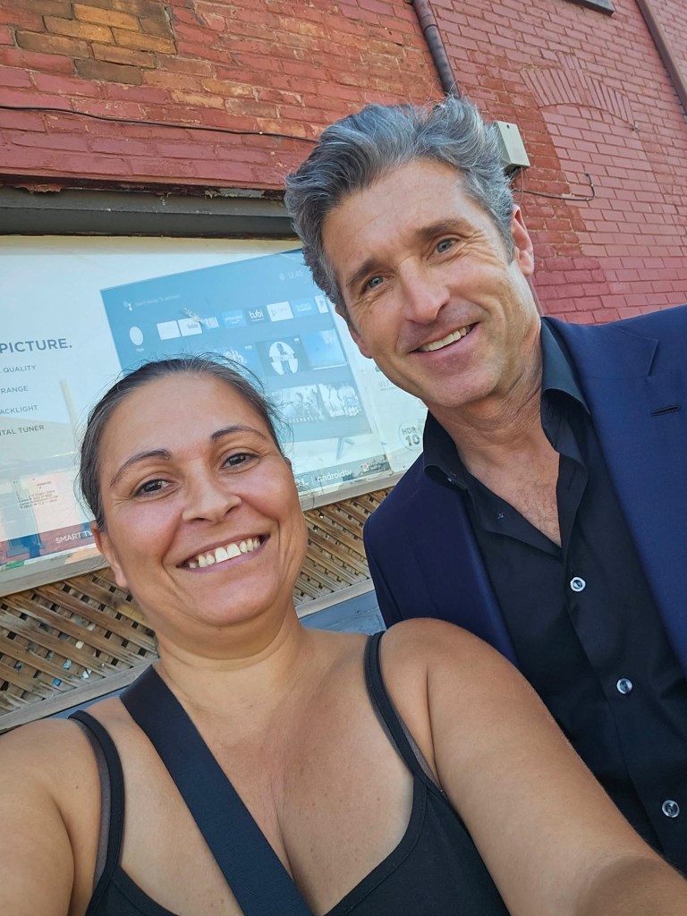 Yesterday, the actor was spotted on set in Hamilton, Ontario, Canada. Patrick took the time to pose for photos with fans.